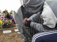 Далее мы полностью заполировали старый портрет и всю надпись, сделали это прямо на кладбище, не перемещая сам памятник.